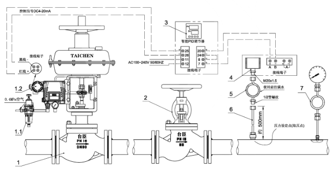 氣動壓力調節閥介紹: ZXP-Y型分體式氣動壓力調節閥采用氣動薄膜調節閥、和智能PID調節器+壓力變送器及3芯屏蔽線等附件組成,具有高控制精度,最高可達+0.2%的控制精